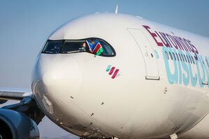 A Eurowings Discover aircraft after landing in August 2021 on its first flight to...