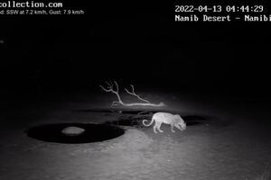 There are no lions in the dunes in southwestern Namib of Namibia. But there is the number...